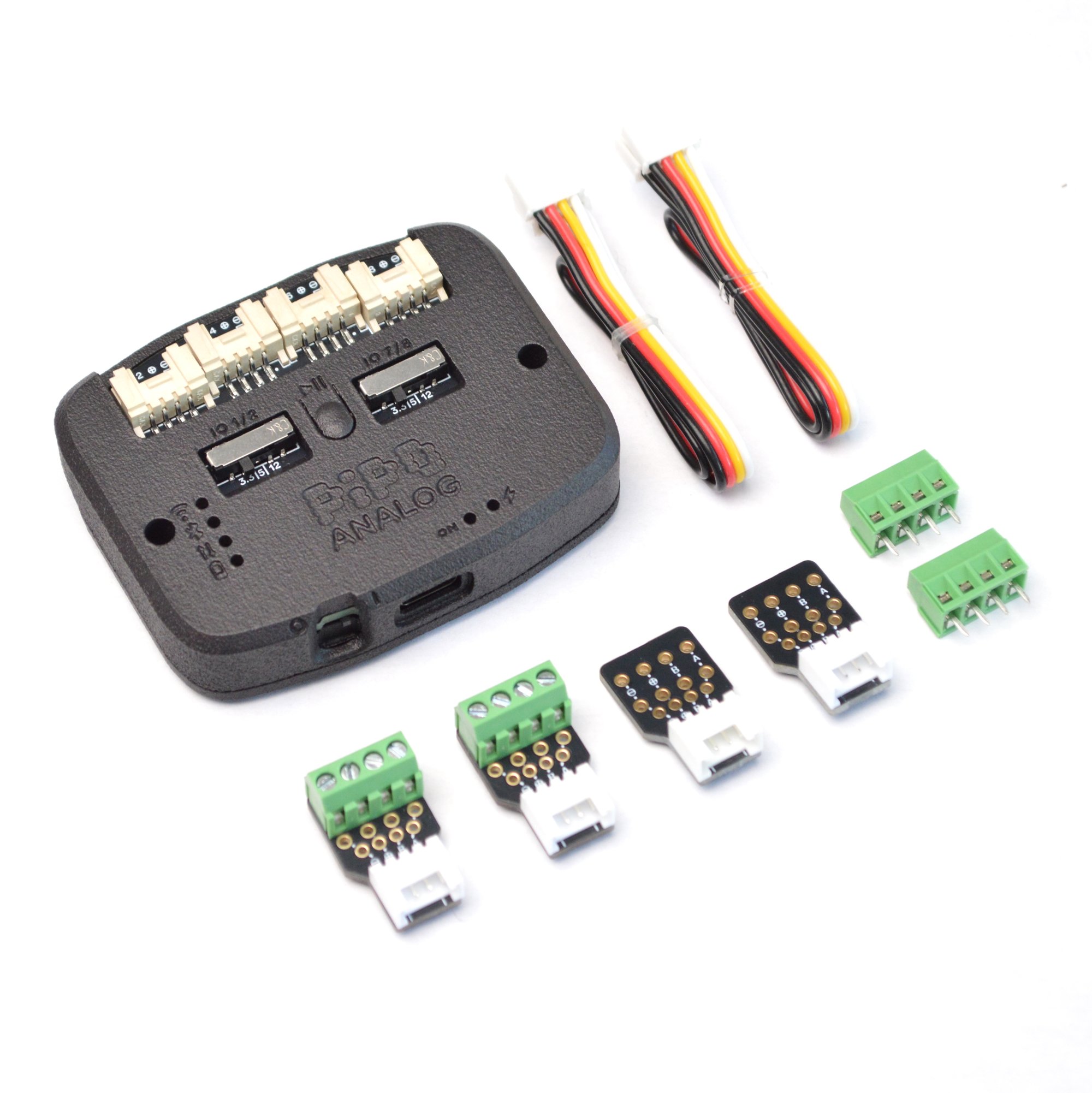 - 8 voltage inputs via 4 Grove connectors (to connect switches, potentiometers, analog sensors, etc...).